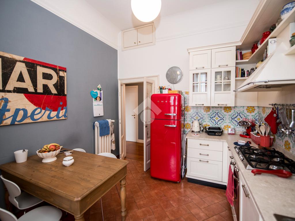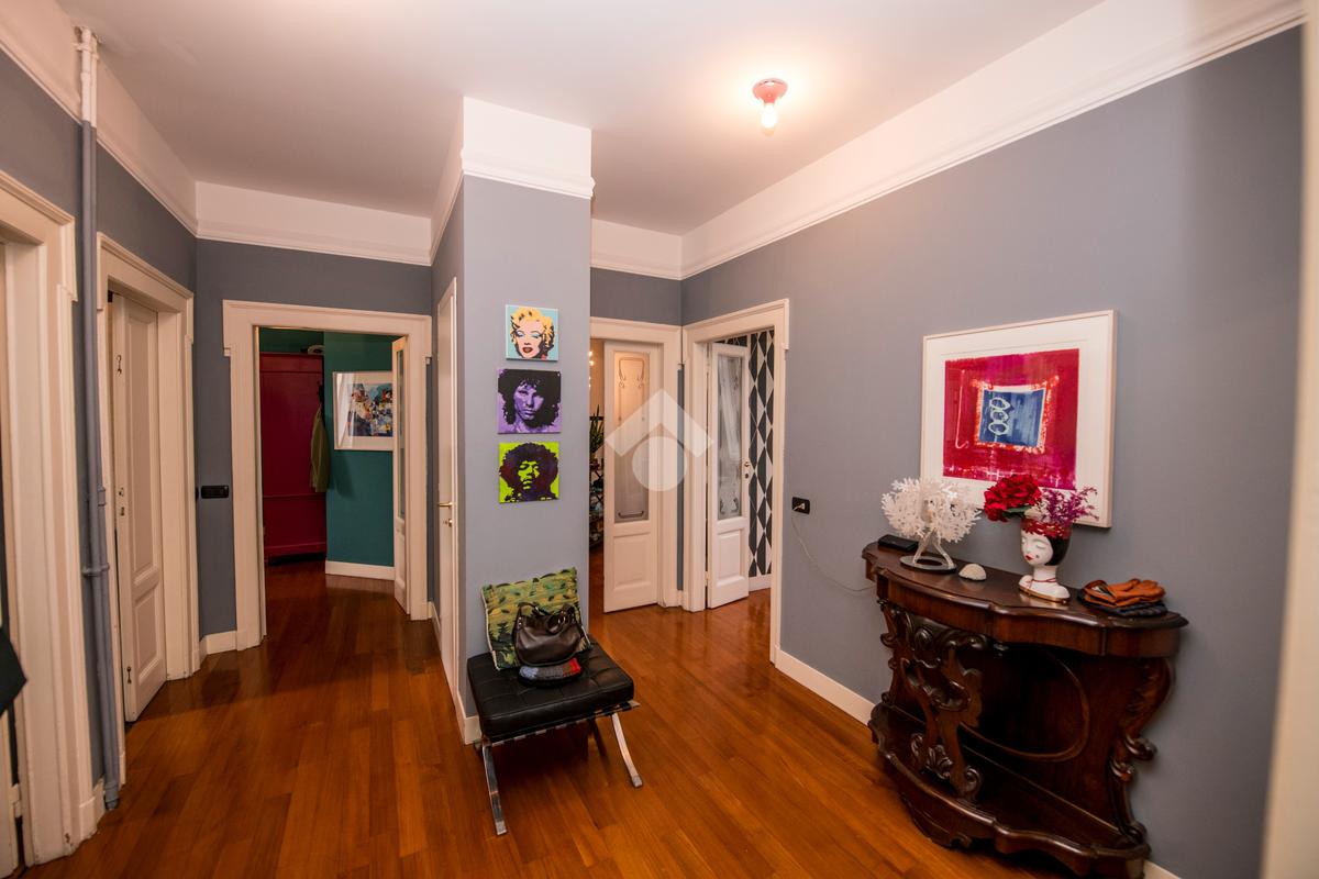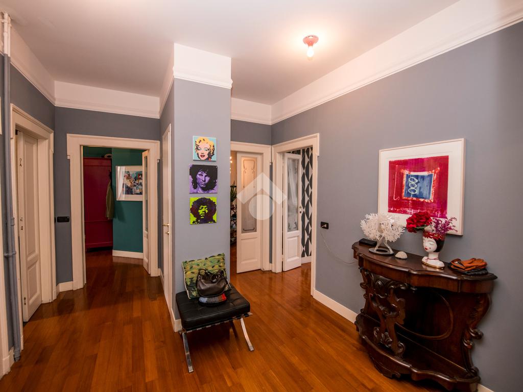 L’appartamento, anch’esso caratterizzato da elementi architettonici anni ’20 perfettamente valorizzati, si presenta in ottimo stato di ristrutturazione e colpisce fin dall’ingresso per gli spazi generosi e la luminosità data dalla doppia esposizione.