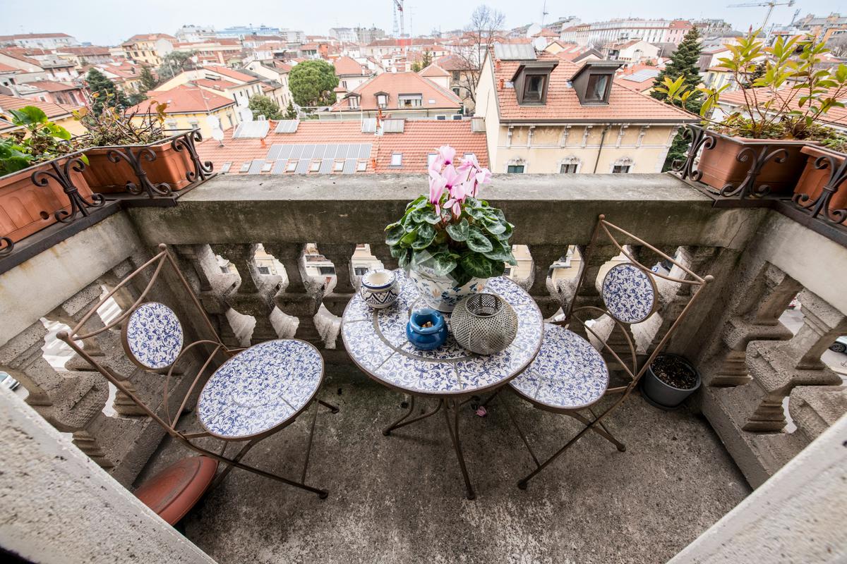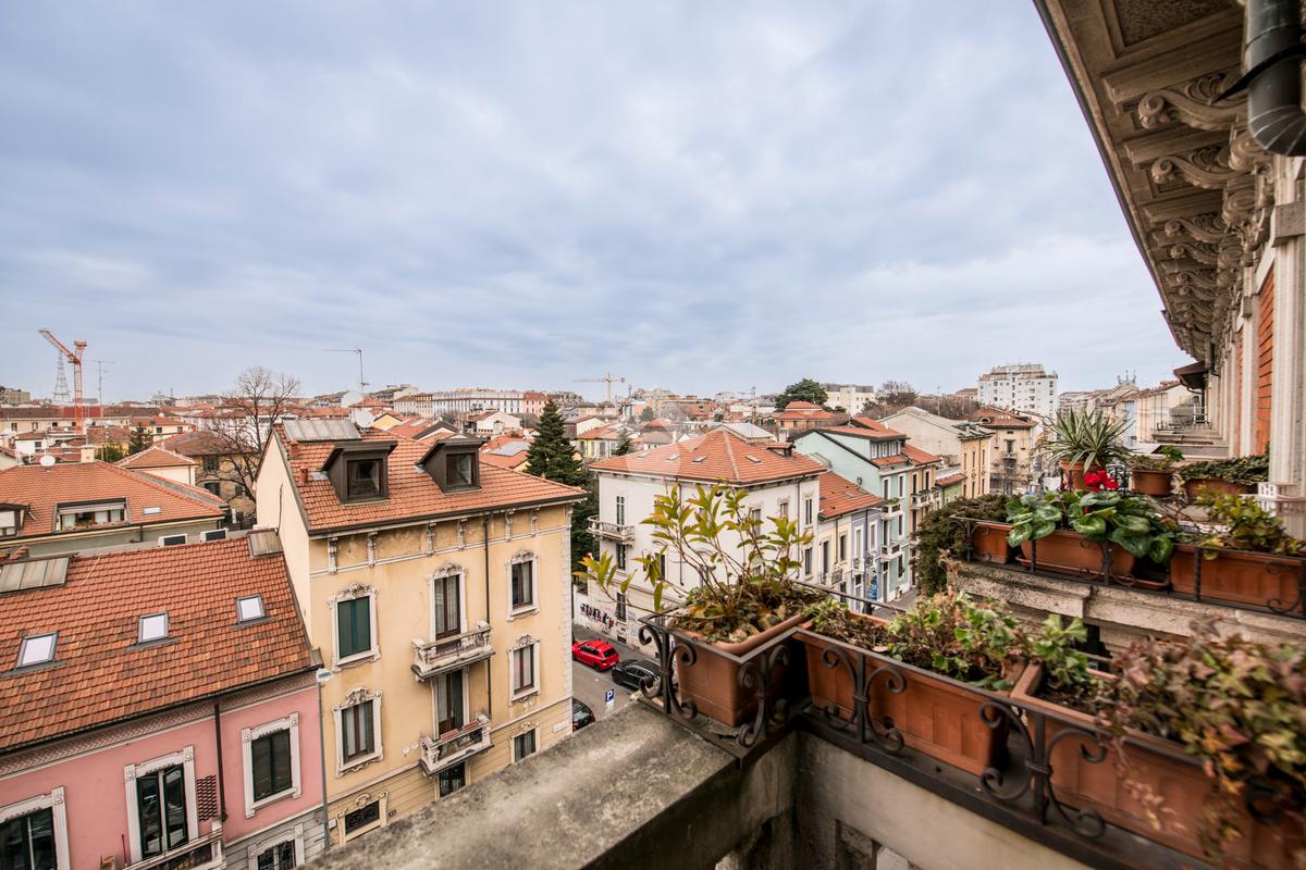 La zona giorno, affacciata su Via Vallazze, è un vero ambiente di rappresentanza: soggiorno doppio con due balconi, ideale per creare area living e sala pranzo distinte.
