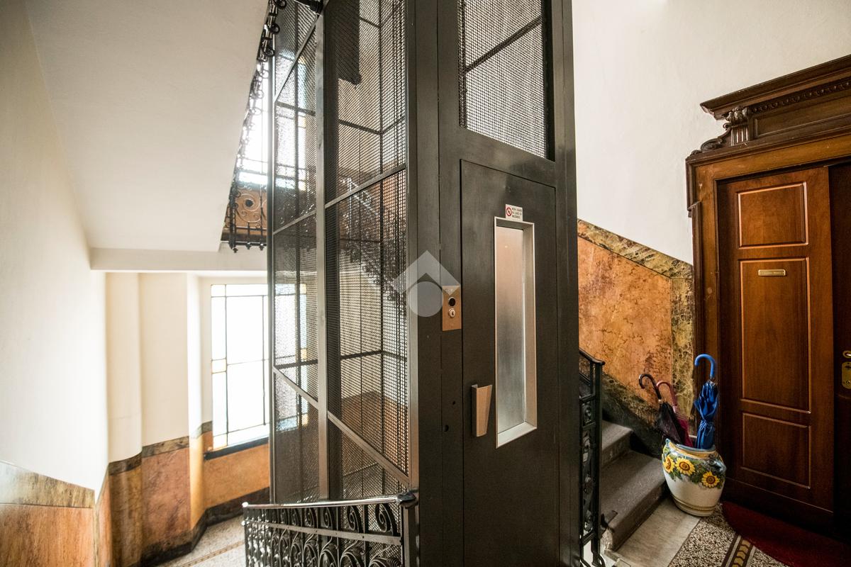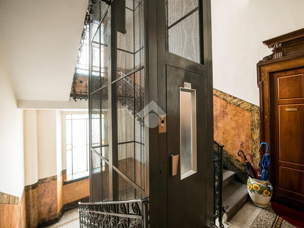 Il palazzo presenta dettagli architettonici originali tipici dell’epoca e offre comfort oggi rari: doppio vano scala, due ascensori e servizio di portineria, attivo tutti i giorni lavorativi mezza giornata, compreso il sabato, elementi fondamentali per una vita familiare comoda e sicura.