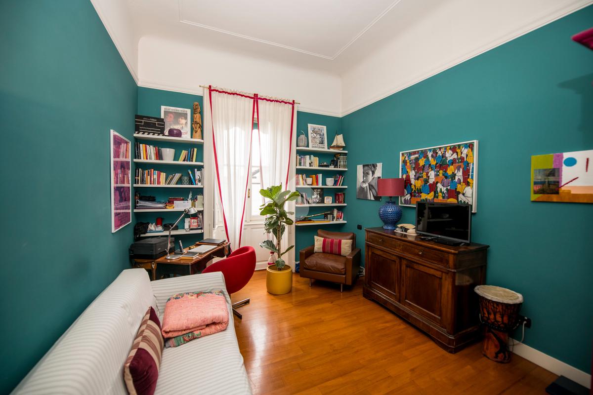 Il fascino dell’epoca è esaltato da soffitti alti 3,70 m con stucchi originali, porte doppie con vetrate decorative, parquet in tutta la casa e impianto stereo integrato nel soggiorno.